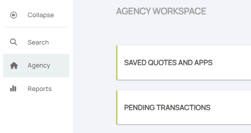The Agency Workspace provides an immediate overview of an agency's policy processing workflow. Queues are arranged vertically that align with the policy lifecycle, starting with quotes and applications at the top.