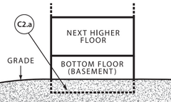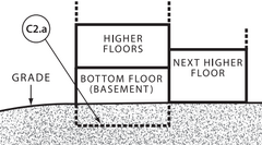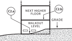 2B Basement with sub-grade egress The bottom floor is below ground level on all sides, and the area of egress is also below grade on all sides. This also applies to buildings with negative flow.