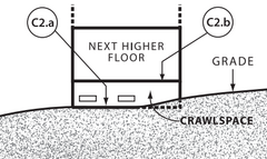• Five Foot Rule: (as above) the distance from the crawlspace floor to the top of the next higher floor must be five feet or less.