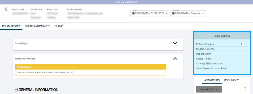 Quickly navigate to specific policy sections to submit changes, such as lender clauses, coverage adjustments, or insured details.